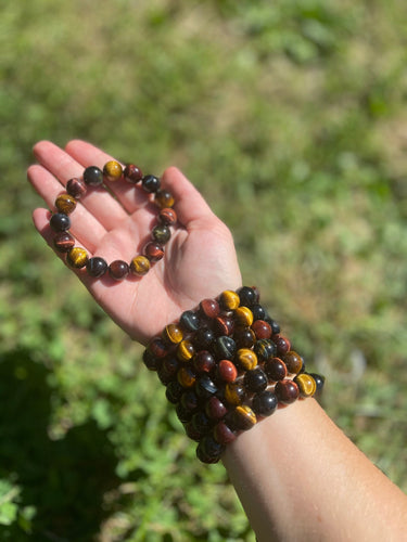 Mixed Tigers Eye Bracelet, Tigers Eye Crystal Bracelet 12 mm, Bracelet with Mixed Tigers Eye, Large Crystal Bracelet