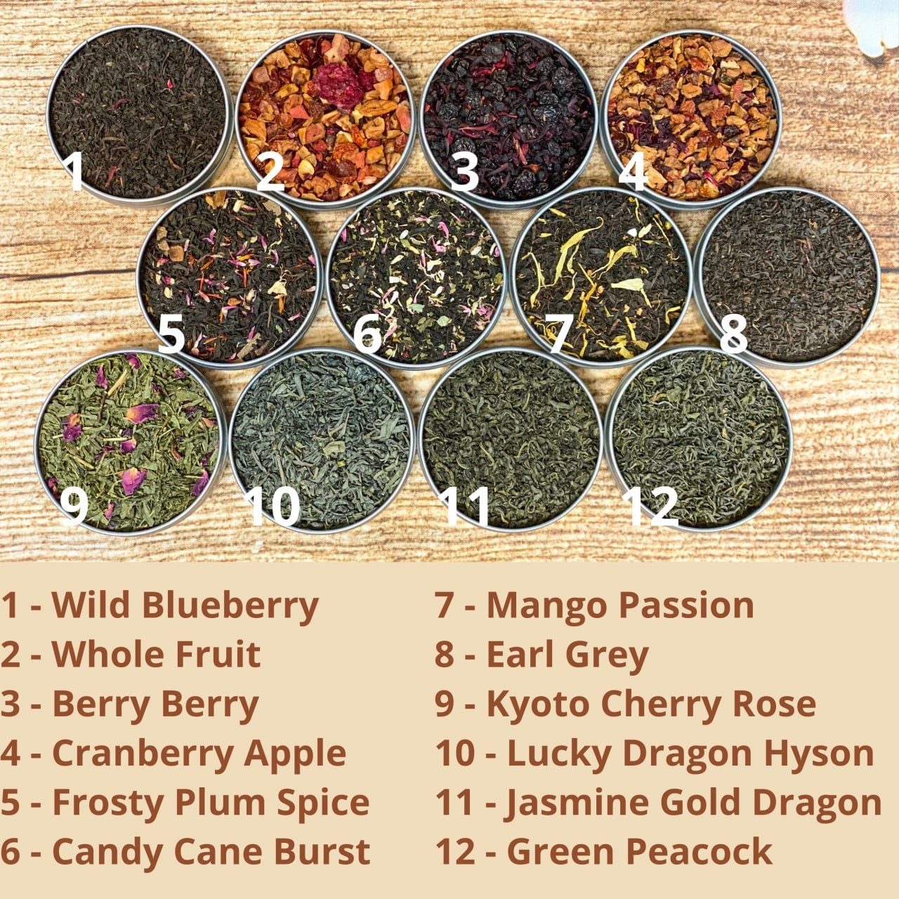 Tea Gift Set with three teas of your choice! The Perfect gift for tea lovers! This Gift Box includes 10 tea bags, metal tea infuser, three 4 oz jars with organic teas of your choice! Please send us the message you would like on the inside of the box!